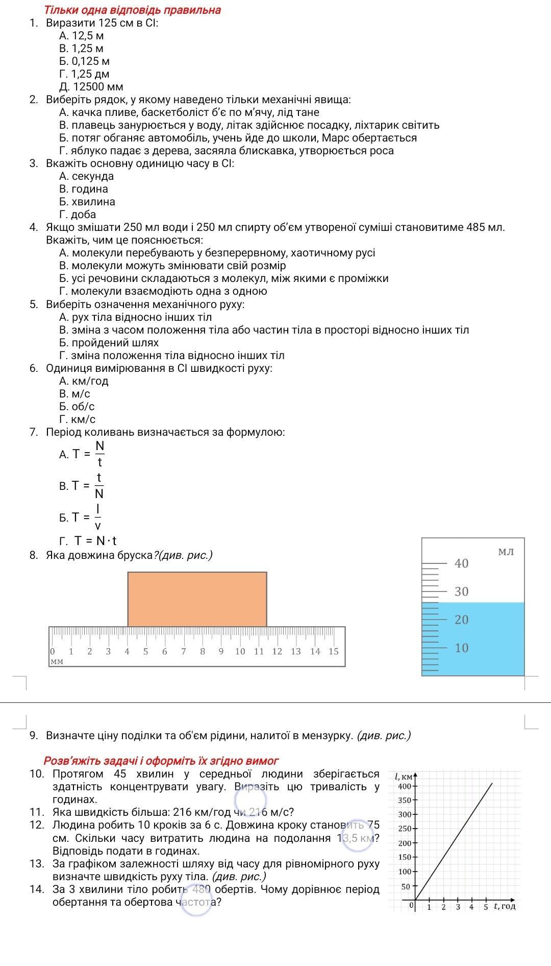 9. Ціна поділки = 2 мл, Об'єм= 26 мл.