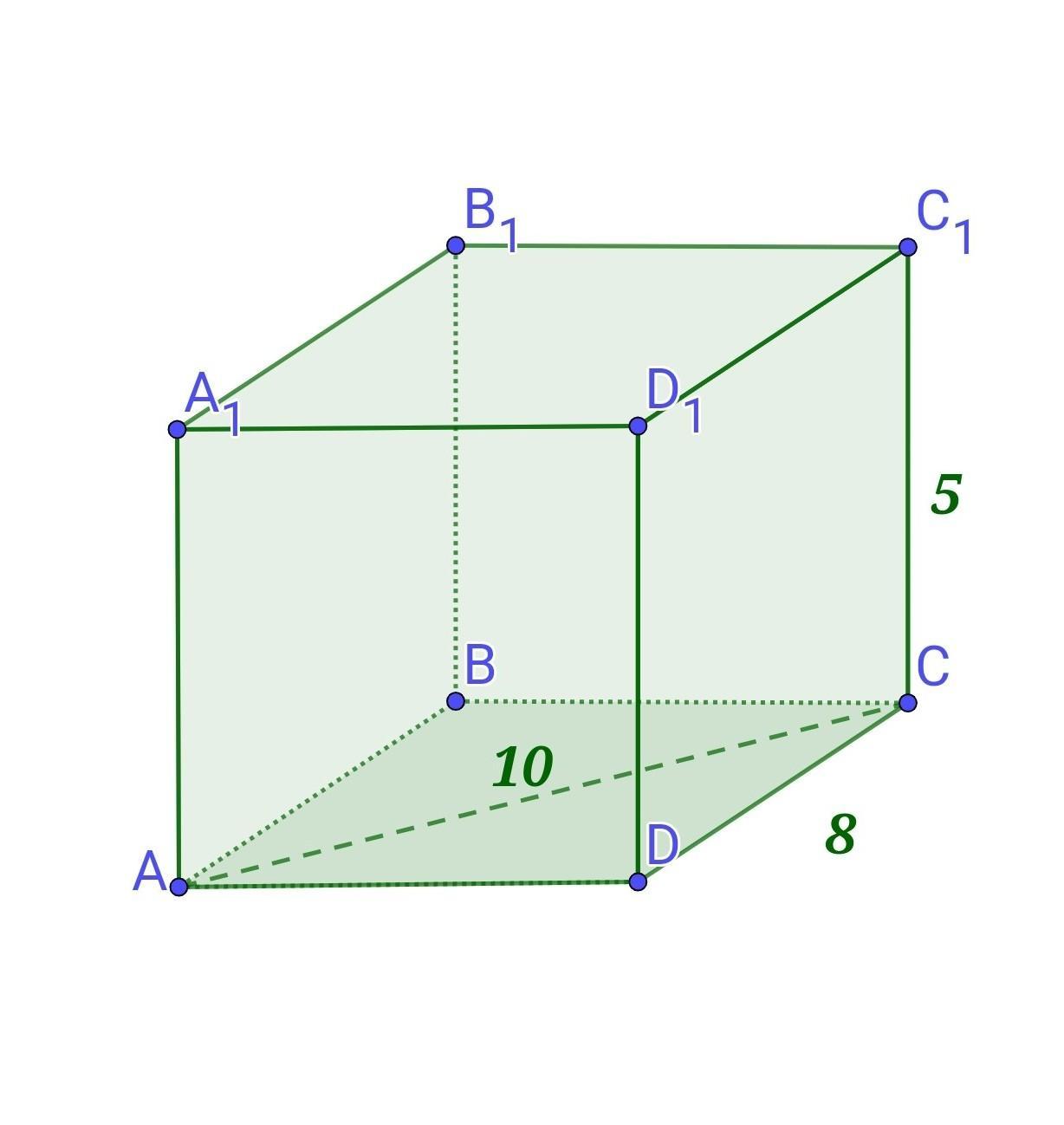 Нехай ABCDA₁B₁C₁D₁ - дана чотирикутна призма. Висота СС₁=5 см, АС = 10 см, DC = 8 см