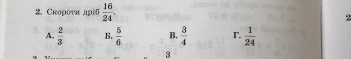 16/24 скорачиваем на наибольший общий делитель 8, поэтому получается 2/3
