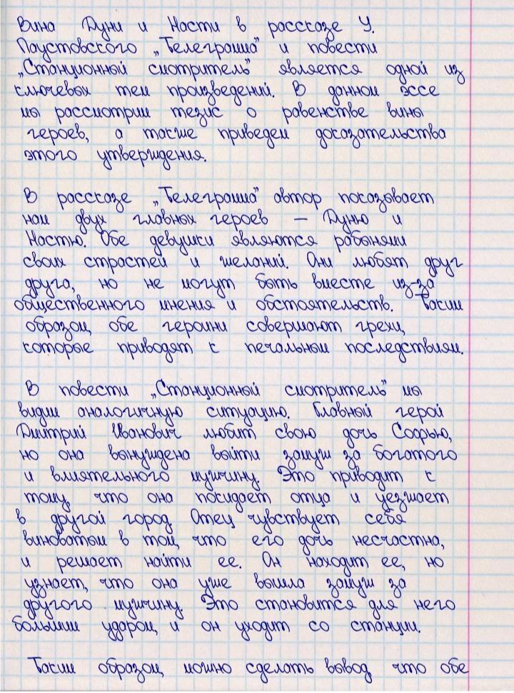Напишите эссе:равна ли вина Дуни и Насти? по рассказу У . Паустовский "телеграмма" и повести "Станционный смотритель" Обязательно вступление-тезис- доказательства-вывод