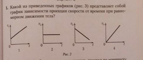 Какой из приведенных графиков (рис. 3) представляет собой график зависимости проекции скорости от времени при равномерном движении тела?