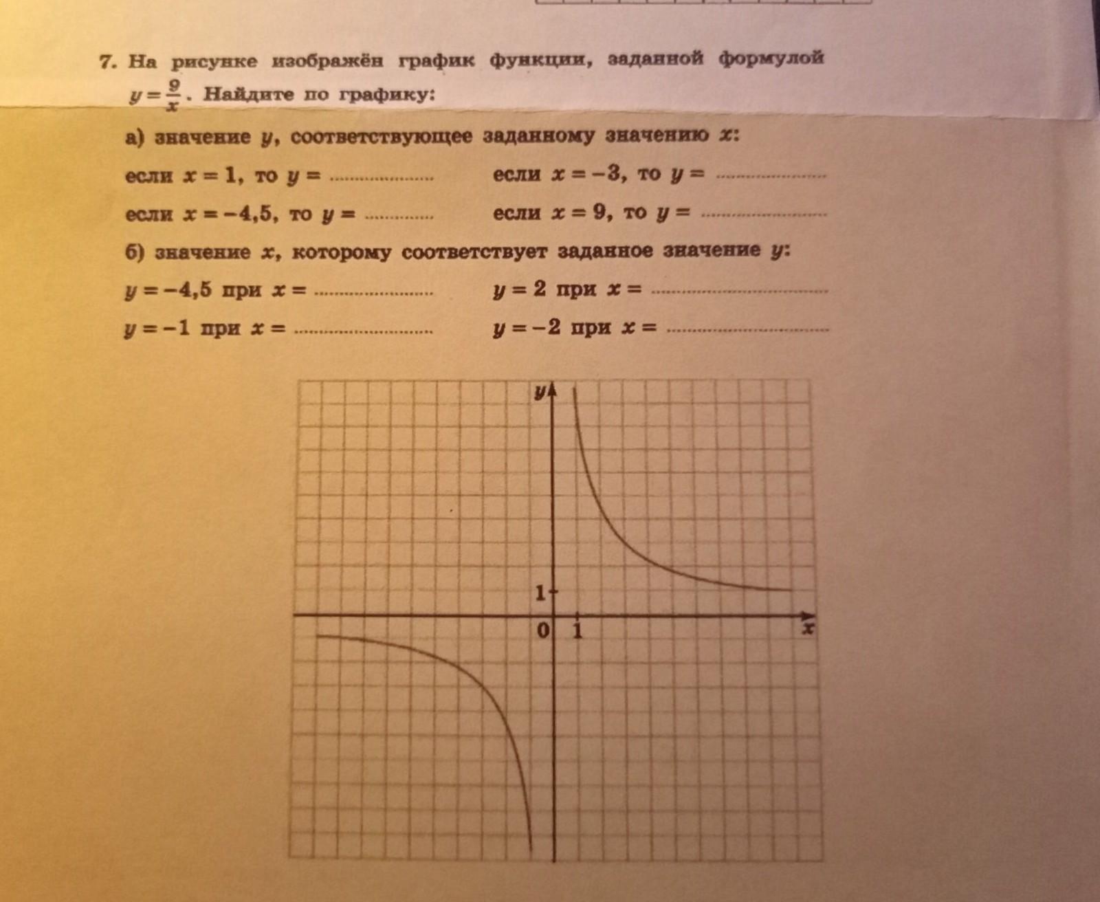 б) -4,5 = y(-2) , 2 = y(4,5) , -1 = y(-9) , -2 = y(-4,5)
