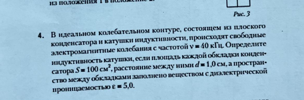 L = 10⁻² м / (4π² · (4·10⁴ Гц)² · 8,85·10⁻¹² Ф/м · 5,0 · 10⁻² м²) = 10⁽⁻²⁻⁸⁺¹²⁺²⁾ / (4·9,87·16·8,85·5) ≈ 10⁴ / 27950 ≈ 0,358 Гн