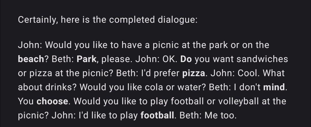 John: Would you like to have a picnic at the