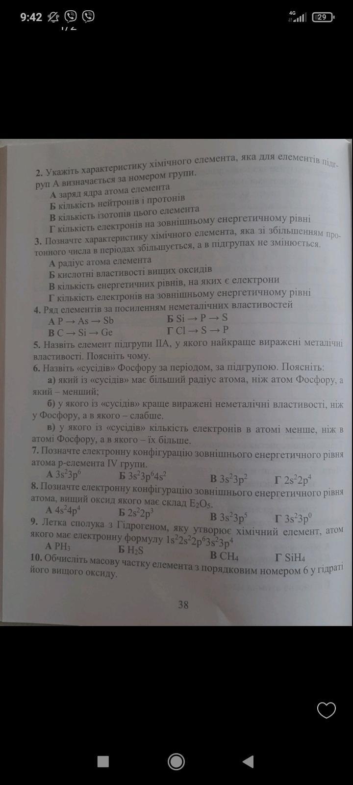 5. Сусіди Фосфору за періодом і підгрупою: а) більший радіус атома має Сіліцій (Si), менший - Алюміній (Al). б) Кремній (Si) має краще виражені неметалічні властивості. в) В Сіліція (Si) менше електронів в атомі, ніж в Фосфору (P), і їх більше.