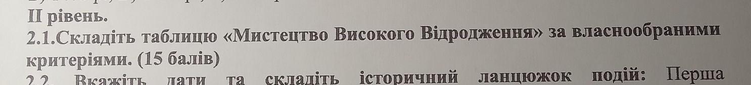 2.1. Складіть таблицю "Мистецтво Високого Відродження" за власнообраними критеріями