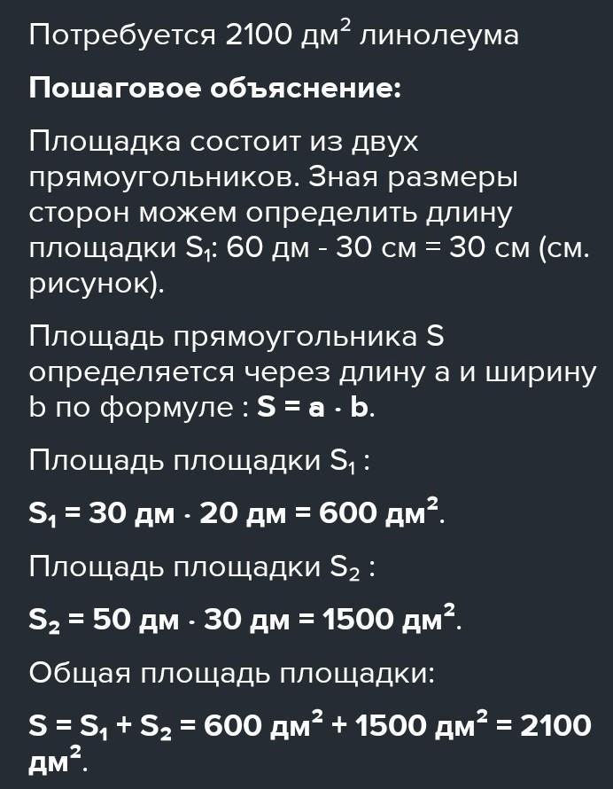 2 ЖҰПТЫҚ ЖҰМЫС Берілген өлшемдегі ауданға төсеу үшін канша линолеум қажет? 20 дм S. 60 дм . S, 30 дм 50 дм