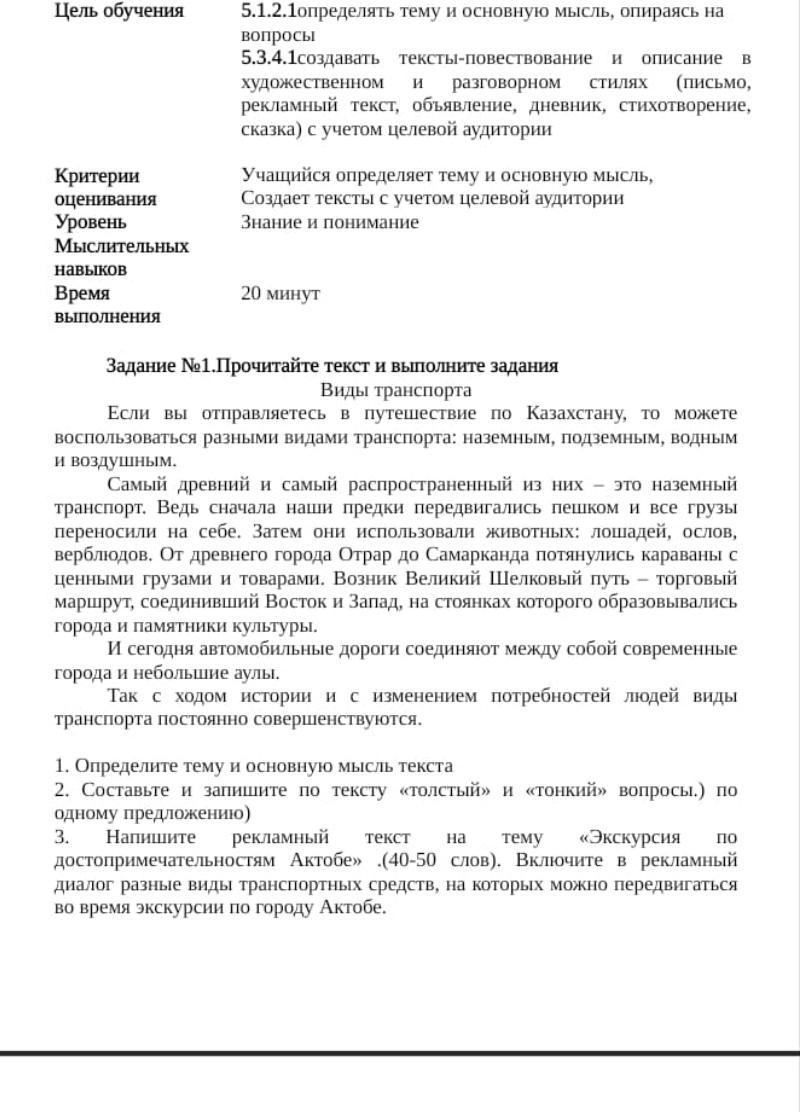 3.напишите рекламный текст по теме экскурсия о доспримечательносятм Актобе.