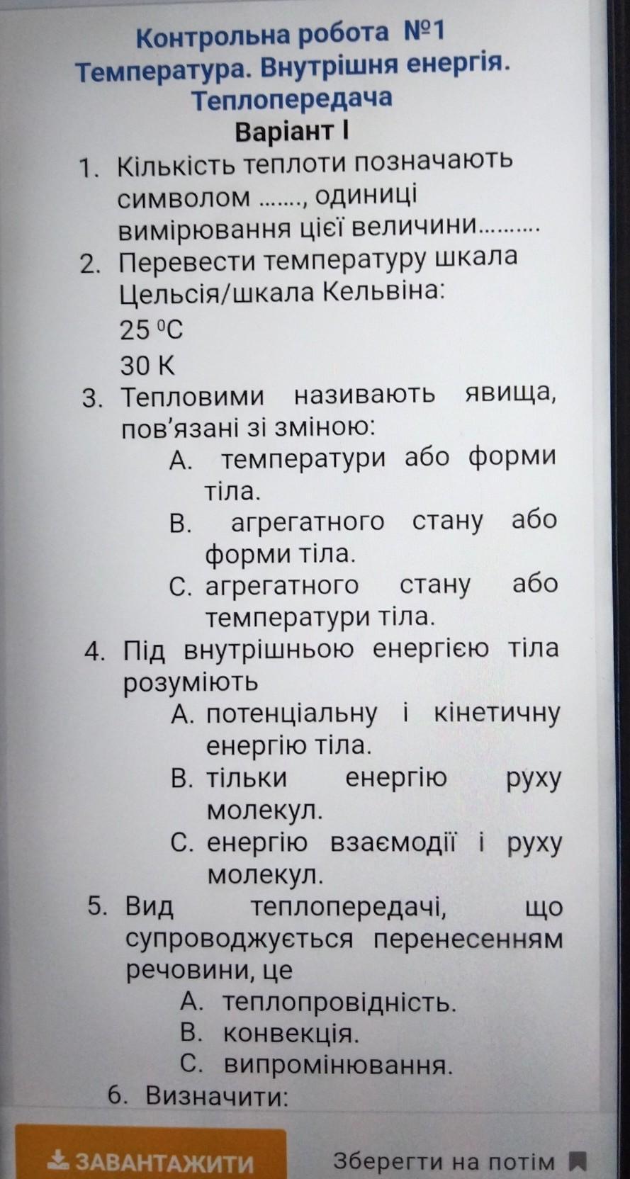 5) Вид теплопередачі, що супроводжується перенесенням речовин, це В. конвенція.