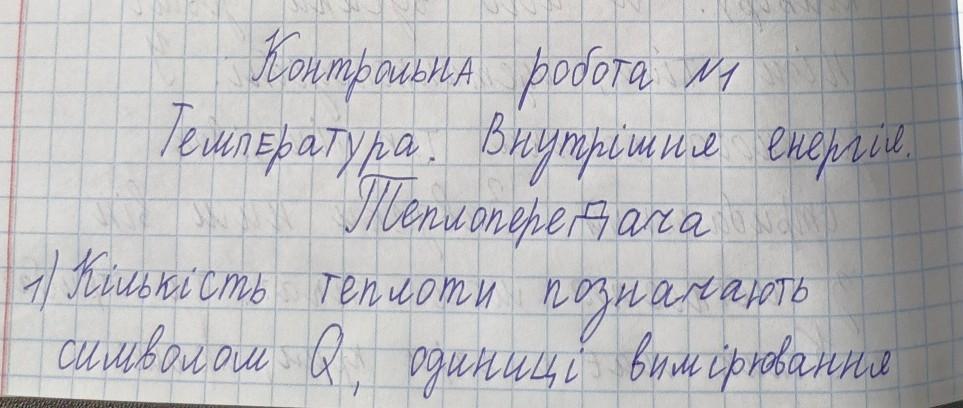 1) Кількість теплоти позначається символом Q, одиниці вимірювання цієї величини в джоулях Дж.