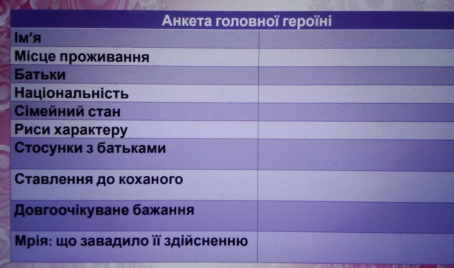 Заповнити анкету Марусі із твору ''Маруся'' Квітка- Основ'яненка .