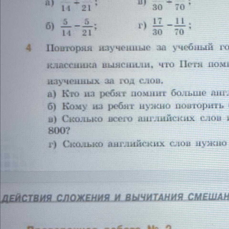 а Миша 7/12 всех изученных за год слов. А)кто из ребят помнит больше английских слов? Б)кому из ребят нужно повторить больше английских слов? В) сколько всего английских слов изучили ребята за год, если слов меньше 800?