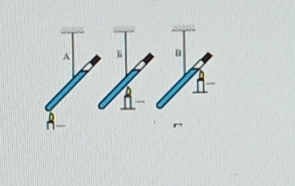 Три однакові пробірки з водою нагрівають однаковими нагрiвниками. в якому випадку вода запарує швидше та ЧОМУ?