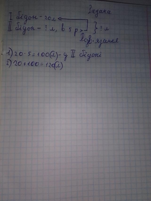a) в большом бидоне 20 л молока, что в 5 раз больше, че