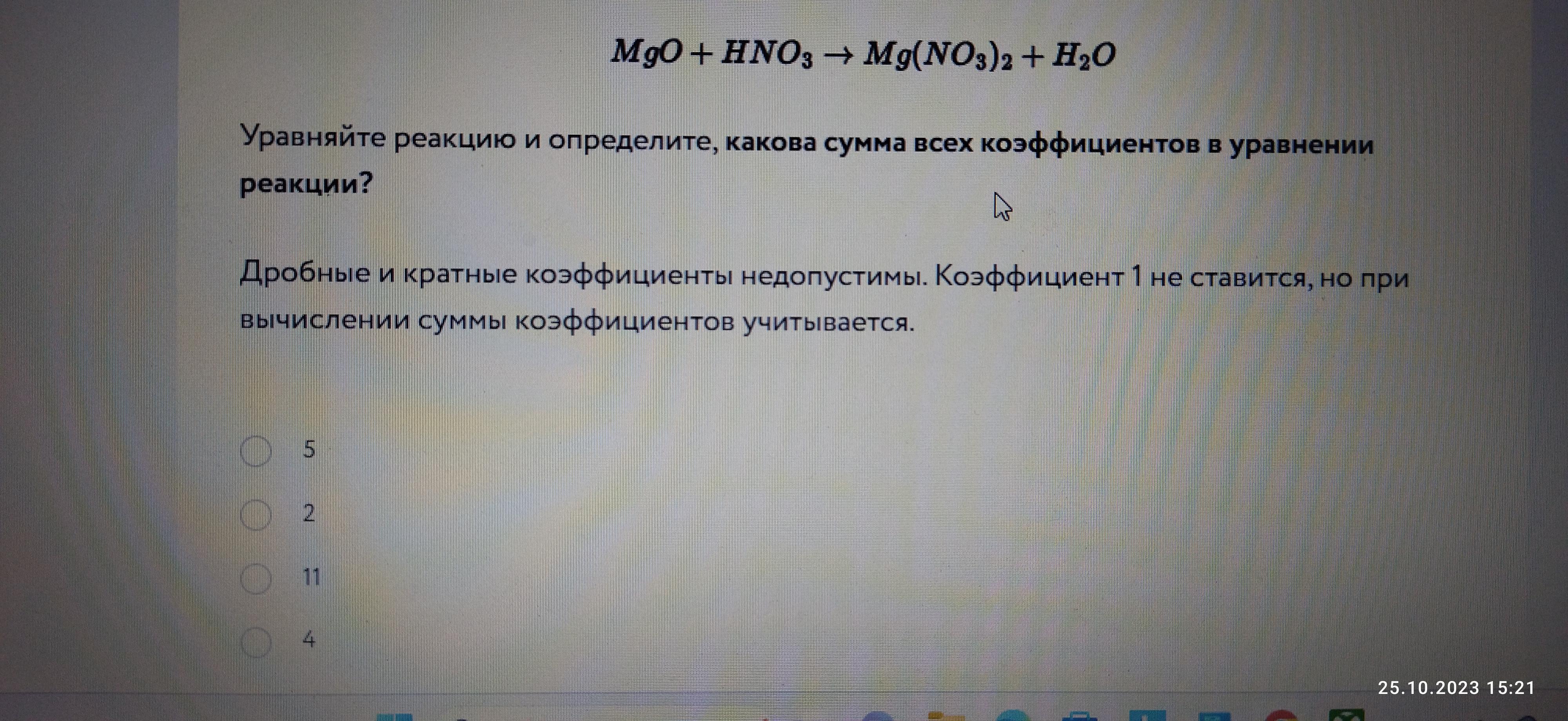 MgO+2HNO3>Mg(NO3)2+H20. 5(коэф)