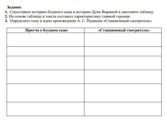 в блудном сыне и в станционном смотрители что Дуня что блудный сын бросают отцов