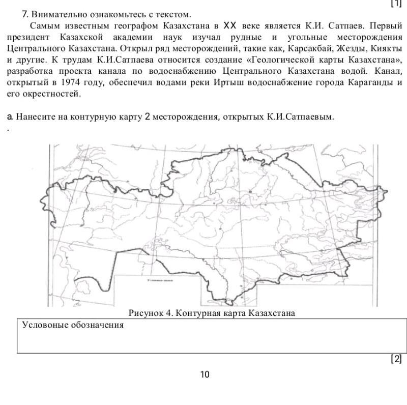 а Нанесите на контурную карту 2 месторождения, открытых К.И.Сатпаевым.