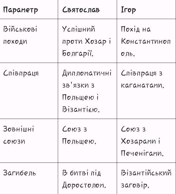 5.Скласти таблицю порівняння : Зовнішня політика Святослава та Ігоря.