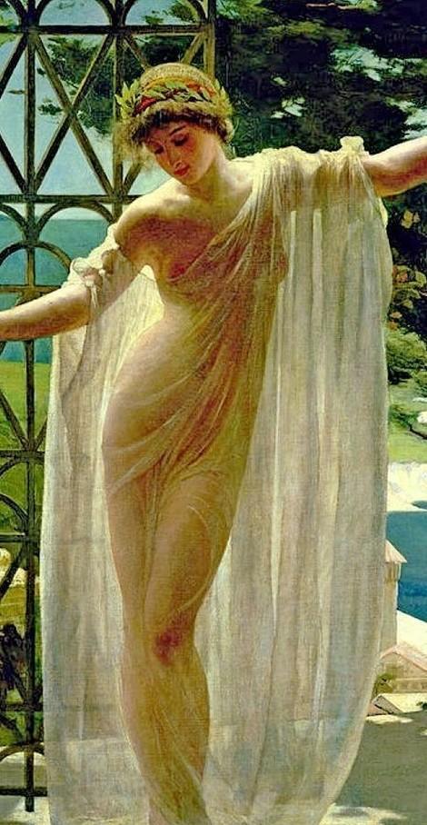 Картина має теплі відтінки кольору, що свідчить про теплу пору року, яка зображається на картині. Видно багато рослин і прикрасу на голові Афродіти на якій є листя. Можна здогадатись, що на фоні є море, адже видно багато води. Афродіта гармонійно поєднується разом з природою на картині.