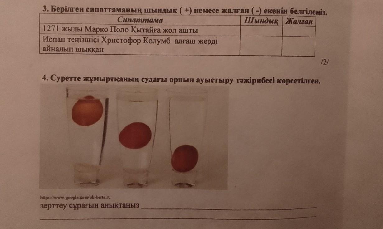 үшінші шыныда көп мөлшерде тұз салынған соның асерінен жұмыртқа ыдыс түбіне батуда
