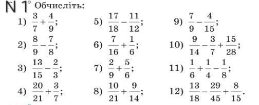 7) 2/9 + 5/6 = 1/18