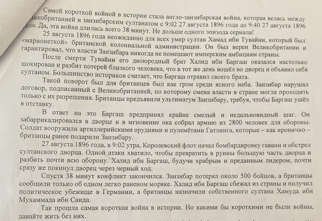 [Занзибар потерял около 500 бойцов], а [британцы сообщили только об одном легко раненом моряке].