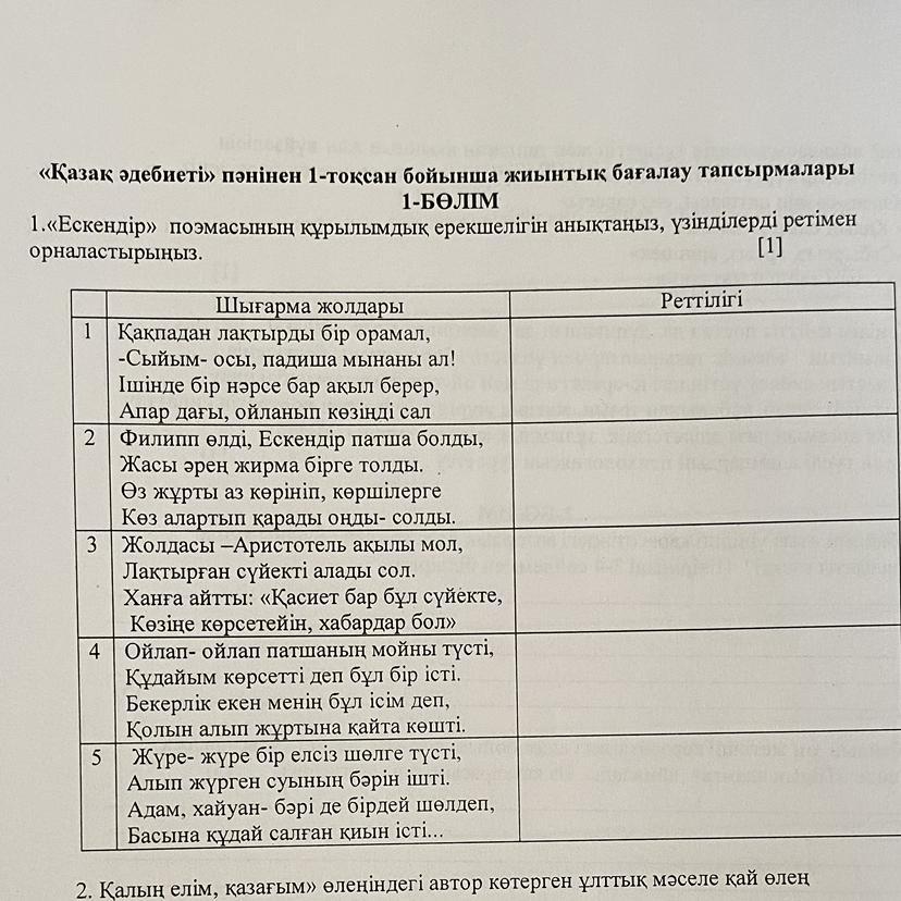 Ответ: құрылымдық ерекшелігі :Поэмада Шығыста Ескендір Зұлқарнайын деген атпен белгілі, Еуропада Александр Македонский аталатын ежелгі грек қолбасшысының өмірі жайында аңыз жазылған. Ескендірді Еуропа ақындары да, Шығыстың Фирдоуси, Низами, Әлішер Науаи, Жәми сияқты ұлы ақындары да жырларына косқан. Абай бұл тақырыпты ескі үлгінің ешқайсысын алмай, өзінше жырлаған. Ақын Ескендірдің өмірбаяндық деректерін дәл келтіреді де, оның дүние жүзін жаулап алмақ болған шапқыншылық саясатын сынауға ауысады. Соған орай поэмаға жас кезінде Ескендірдің тәрбиешісі болған ұлы философ-гуманист Аристотельді кіргізеді. Әңгімеде жауыздыққа жетелейтін тойымсыздық екенін көрсете келіп, әділдік, даналықты соған қарсы қояды. Қақпа мен адамның көз сүйегін символ ретінде алады да, ол жұмбақтарды ақылға шештіреді.
