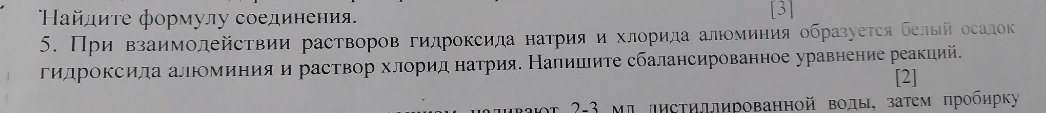 5. При взаимодействии растворов гидроксида натрия и хлорида алюминия образуется белый осалок гидроксида алюминия и раствор хлорид натрия. Напишите сбалансированное уравнение реакций.