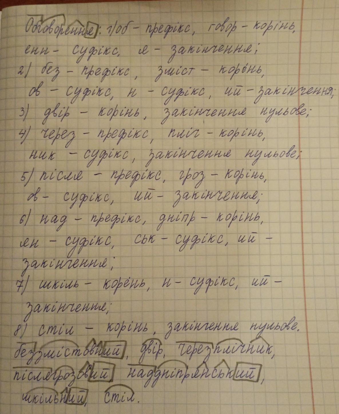 6) над-префікс, дніпр-корінь, ян-суфікс, ськ-суфікс, ий-закінчення.