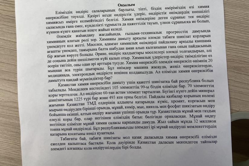 Тірек сөздер: ТМД, химия, табиғат, Менделеев кестесі, пайдалы қазбалар.