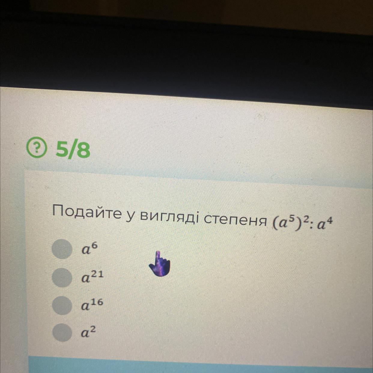 a^10 : a^4 (при діленні степіні віднімаються) = a^6