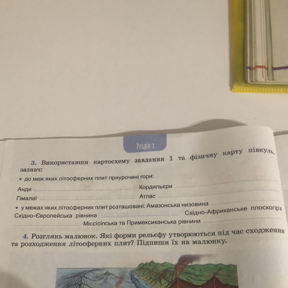 Використавши картосхему та Фізичну карту півкуль до меж яких літосферних плит приурочені гори Анди Гімалаї Кордильєри атлас