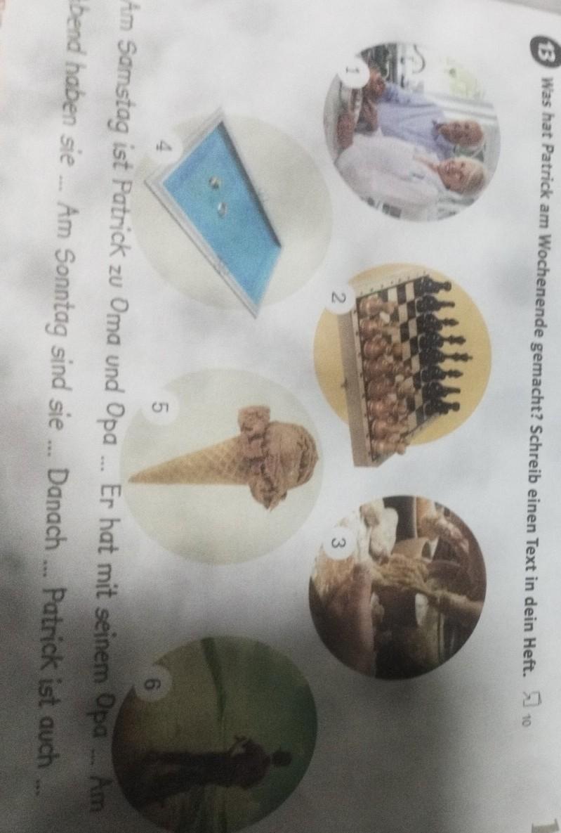 13 Was hat Patrick am Wochenende gemacht? Schreib einen Text in dein Heft.