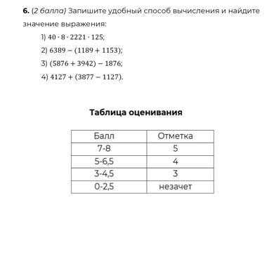 6. (2 балла) Запишите удобный способ вычисления и найдите