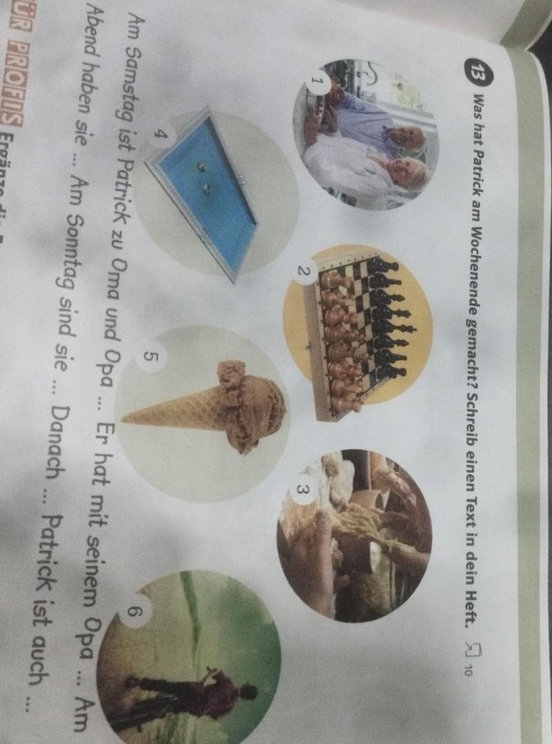 13 Was hat Patrick am Wochenende gemacht? Schreib einen Text in dein Heft.
