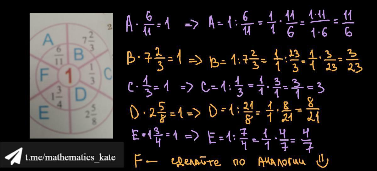 учитывая что произведение взаимно обратных чисел равно 1 вместо букв A B C D E и F вставьте соответствующие числа