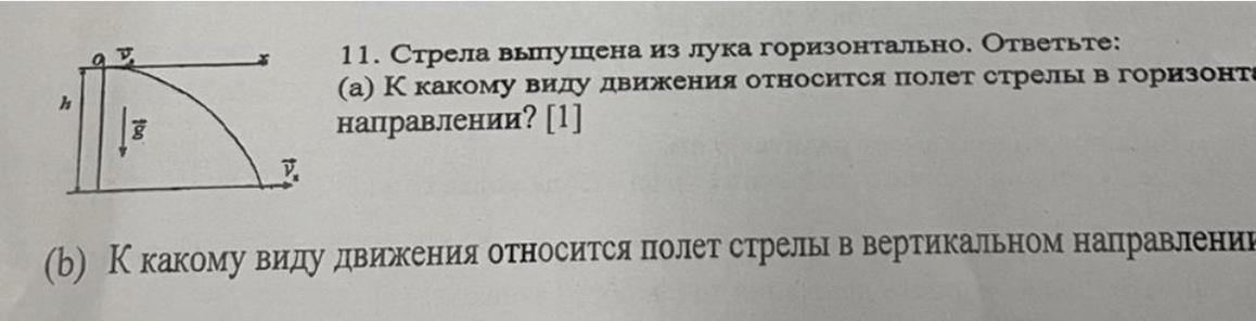 11. Стрела вышущена из лука горизонтально. Ответьте: