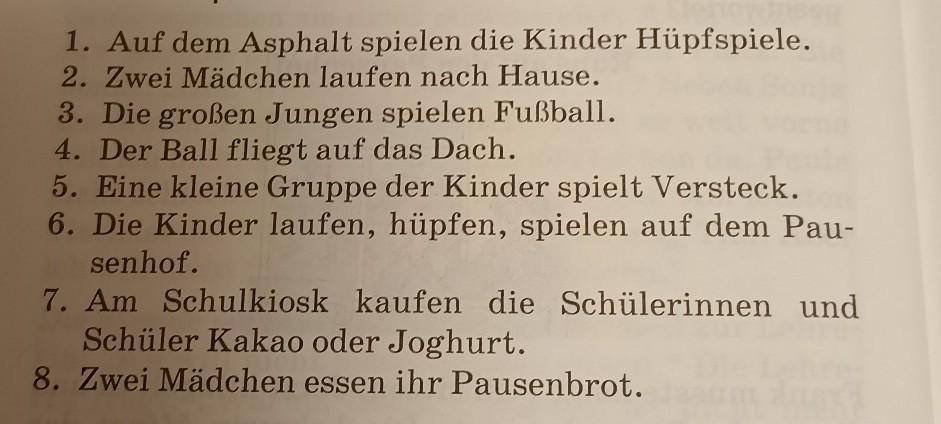 6. Die Kinder sind gelaufen, gehüpft, haben auf dem Pausenhof gespielt.