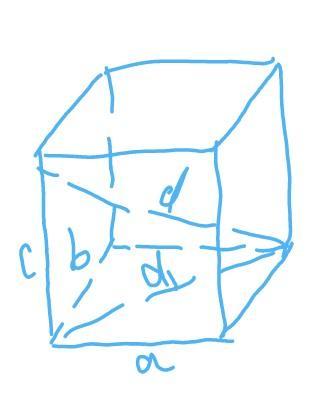диагональ основания : d1=√(a²+b²)=