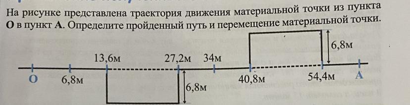 О в пункт А. Определите пройденный путь и перемещение материальной точки.(даю 30 баллов)
