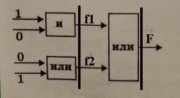 F=(1 И 0) ИЛИ (0 ИЛИ 1)