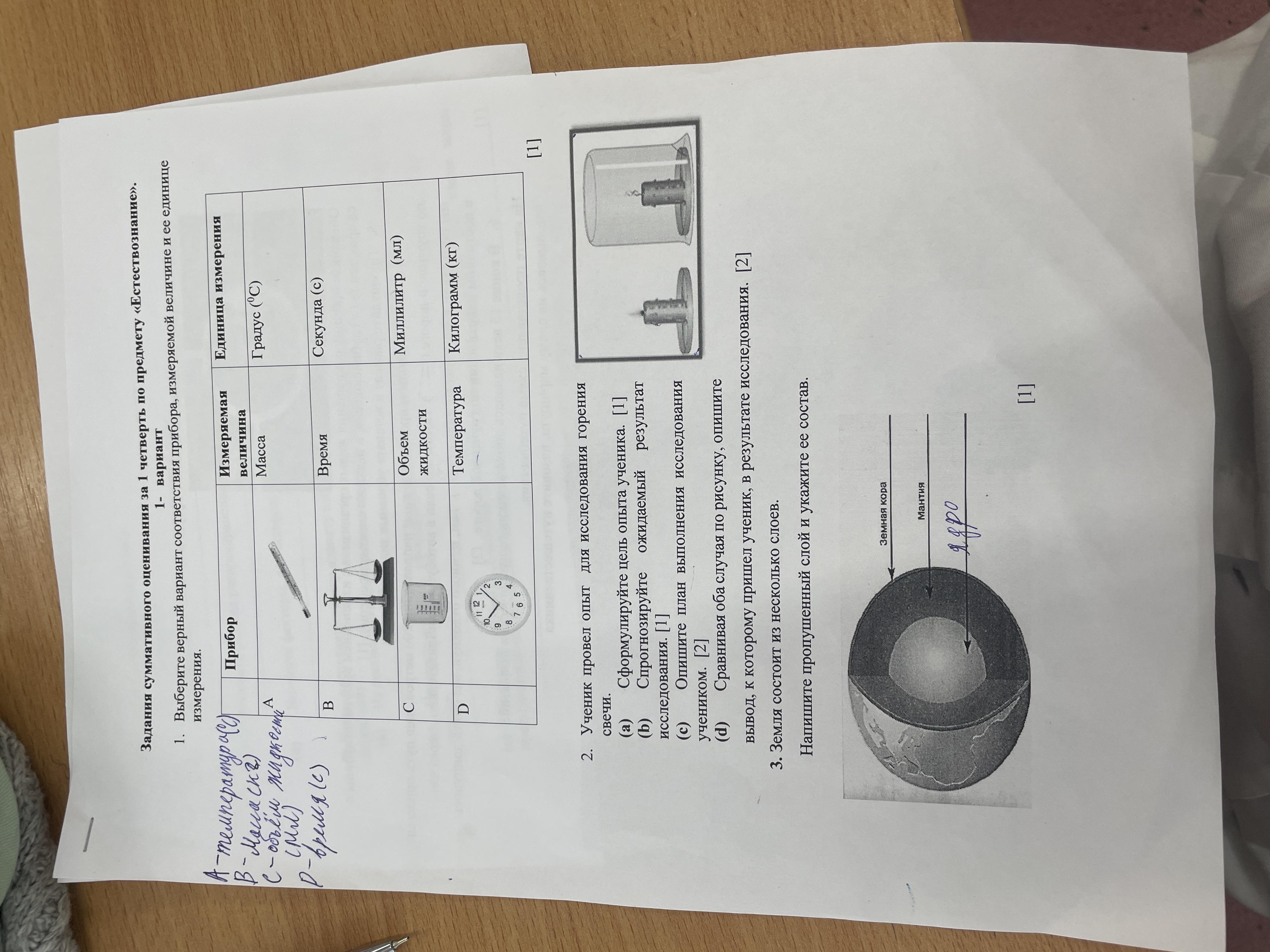 Задания суммативного оценивания за 1 четверть по предмету «Естествознание» 1 вариант
