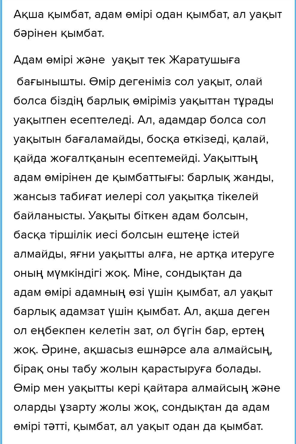 2) «Ақша қымбат, адам өмірі одан қымбат, ал уақыт бәрінен қымбат» деген екен Александр