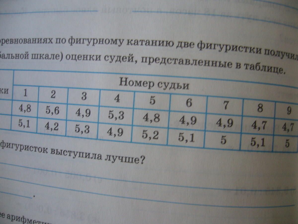 На соревнованиях по фигурному катанию фигуристки получили (по шестибальной шкале) оценки судей, представленные в таблице.