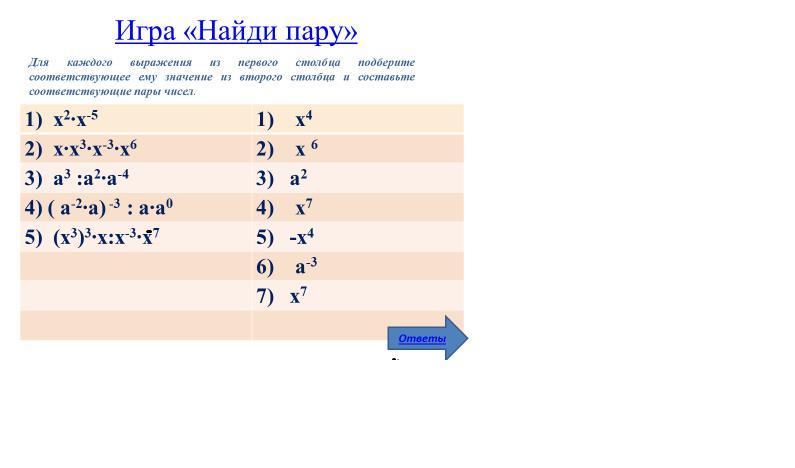 Этот ответ соответствует ответу 4) x⁷ из второго столбца.