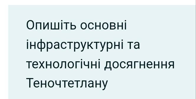 Ответ:Теночтетлан був столицею Ацтекської імперії, яка існувала в Мексиці до завоювання її іспанцями в 1521 році.