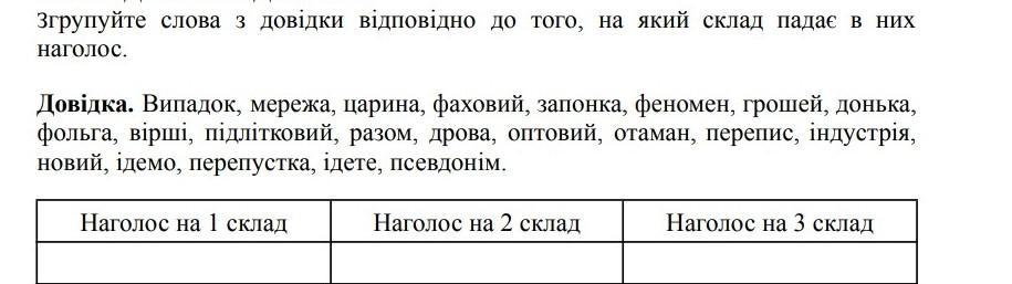 1 склад: випадок, царина, фаховий, запонка, донька, фольга, вірші, разом, дрова,