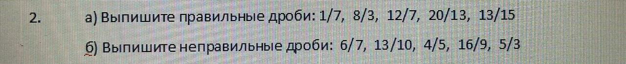2. а( выпишите правильные дроби: 1/7, 8/3 12/7, 20/13, 13/15