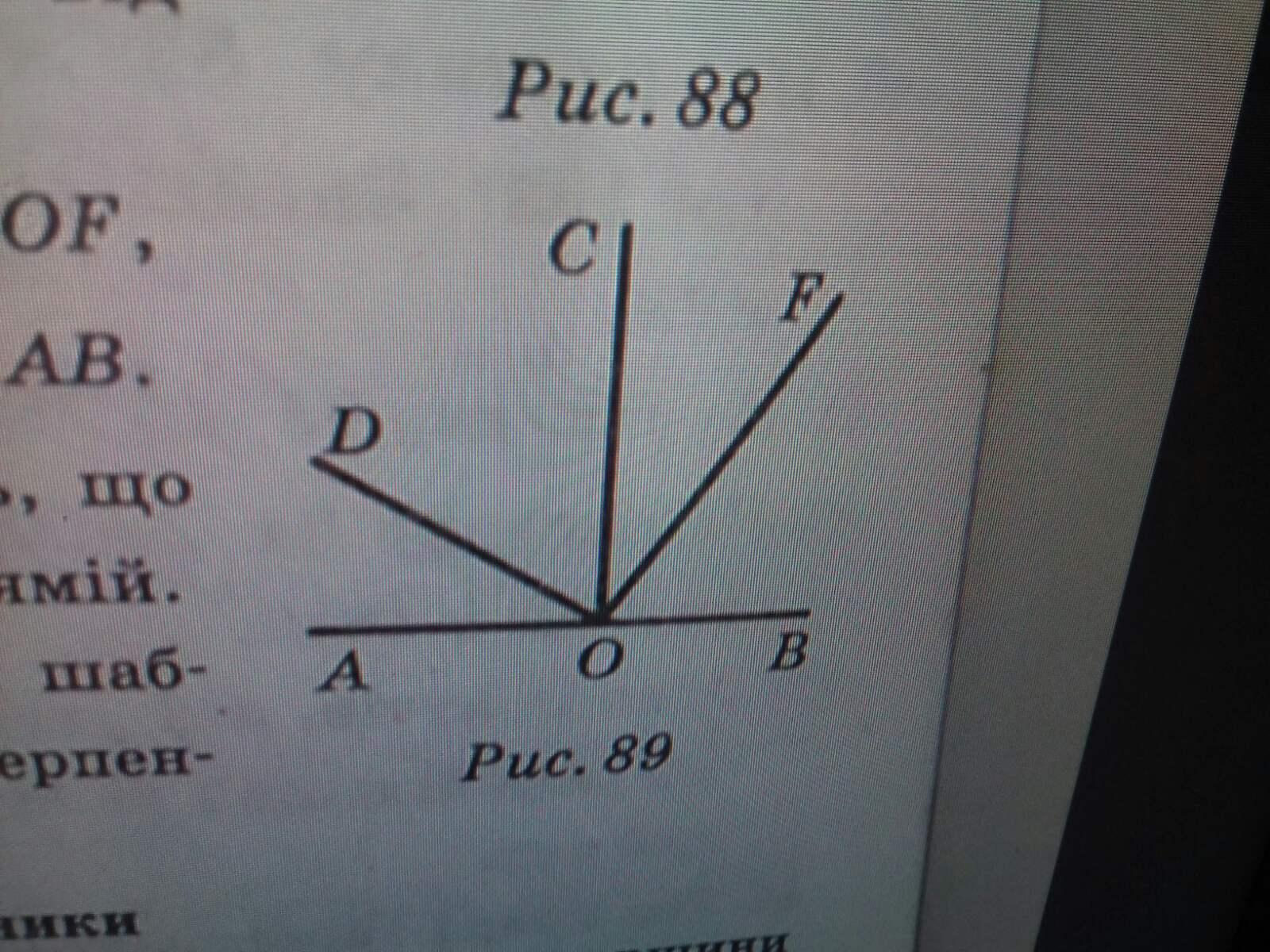 На рисунке 89 угол AOD равен углу COF ,угол DOC равен углу BOF Докажите,что OC перпендикулярно AB