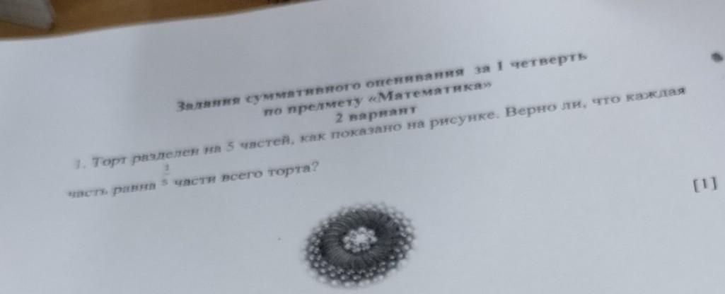 Верно, потому что, каждая часть равна ⅕ части всего торта